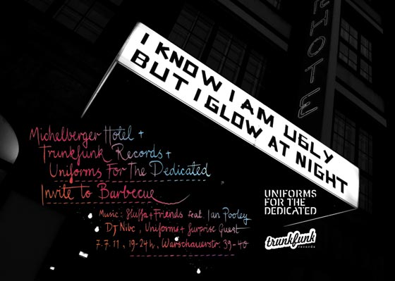 Musik: Stuffa (Trunkfunk / Defected ) * Ian Pooley (Poodlemusic / Force Inc. / Ovum / NRK) * DJ NIBC (Trunkfunk / Ministry of Sound / Kontiki) * Uniforms (Trunkfunk / Moda / French Express) + Live: Deniz Kurtel (Crosstown Rebels / Wolf + Lamb)