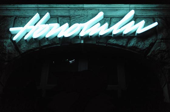 So naheliegend er heute erscheinen mag, der Name unseres Hotels war Ergebnis einer Runde Stadt Land Fluss, ergänzt durch die Kategorien Pornofilm, Tier und Hotelname. Am Ende einer langen Nacht in der Uckermark blieben zwei Namen: Honolulu und Michelberger. Und weil die Baustellen Zeiten nun wirklich langsam mal vorbei sind, heisst unsere Bar jetzt Honolulu!