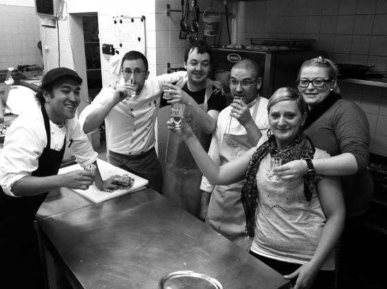 Hundert mal Lunch, das sind um die siebentausend Schnitzel, ein ganzer Haufen Perlhuhnbrüstchen, zehntausend Salate, fünfzehntausend Süppchen, hunderfünfzigtausend Gramm Schupfnudeln und Maultaschen, jede Menge Burritos, Gemüsestrudel und Steinpilzrisotti – und unzählig viele tolle Gäste. Alle die seit unserem ersten Mittag dabei sind, bekommen heute Ihr Essen und ihre Getränke auf Kosten des Hauses. Alle anderen werden gezwungen, entweder beim Betreten oder beim Verlassen des Restaurants einen Michelberger Kräuterschnaps mit uns trinken.