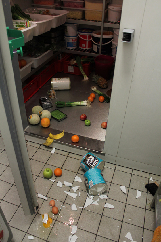 Ok. You won’t believe what happened last night. There was a burglary in our kitchen. They broke down the door. They didn’t touch Normans purse on the table at the entrance. They must have walked straight to the cold store and there they left quite a mess. It took some time until we found out the most stupid thing: they only stole bananas! They actually took ALL our bananas. Nothing else! WTF!? We thought about calling the police for missing bananas… in the end, we had to because of the smashed door. They have two people working on the case now. The Banana Robbery. But seriously, if anyone knows anything about this, please let us know.