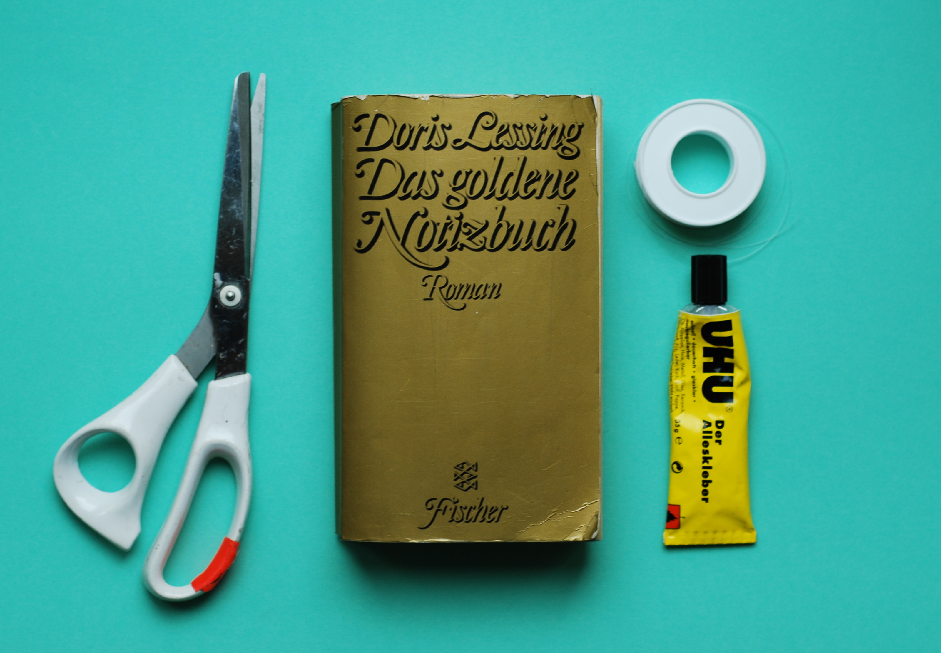 Du brauchst: Ein altes Buch (mind. 350 Seiten), eine Schere, Kleber und Angelsehne