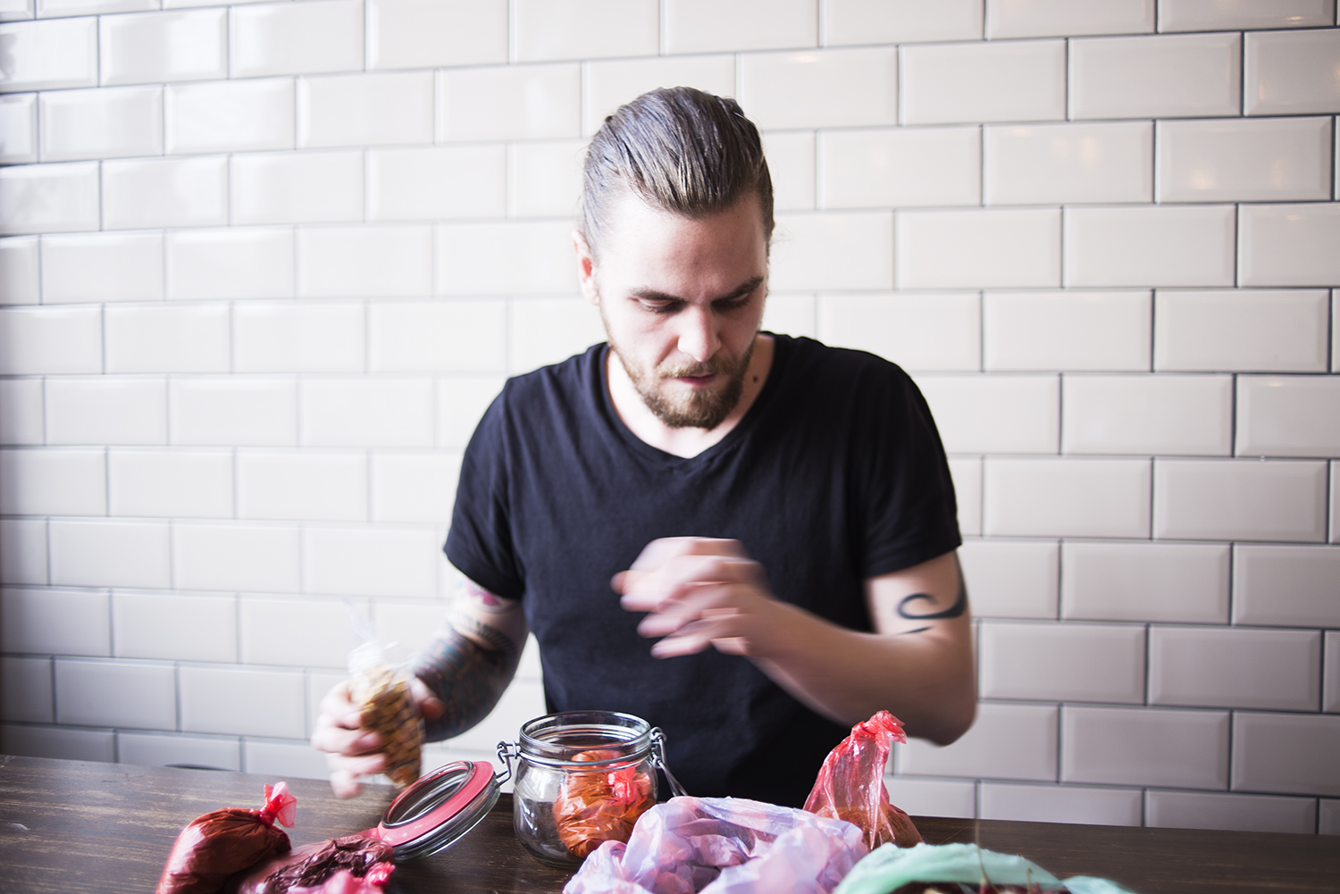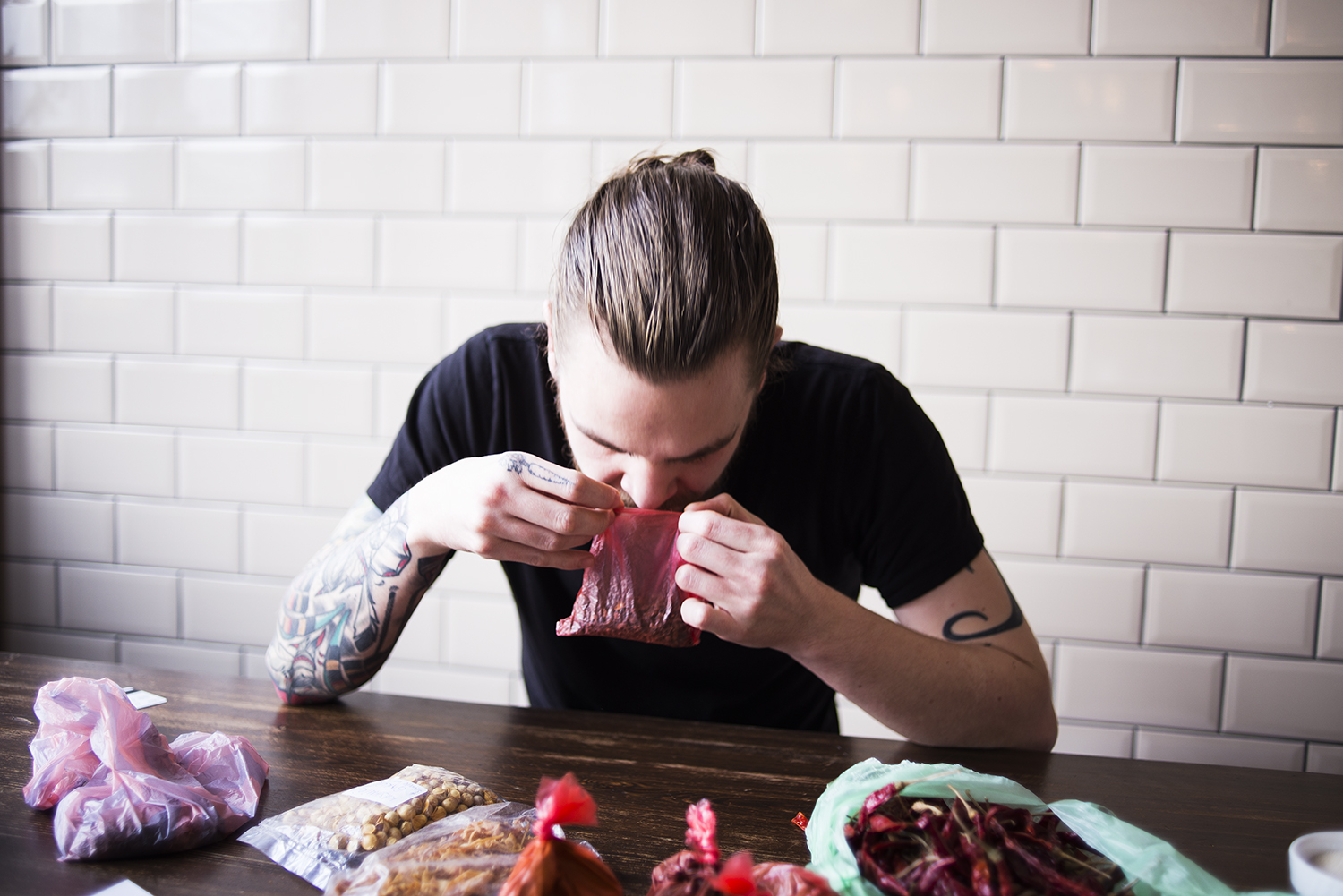 Julian lacht: “Gewürze und Gemüse sind für mich die tollsten Produkte zum Arbeiten & gerade die indisch – arabische Küche bietet in all ihrer Vielfalt eine Menge Raum um sich aus zu probieren. Und da gerade Nicole von ihrer Reise durch Indien & Sri Lanka wieder gekommen ist & vieles mitgebracht hat, kribbelt es natürlich in den Fingern direkt den Spirit in ein Gericht zu bringen“