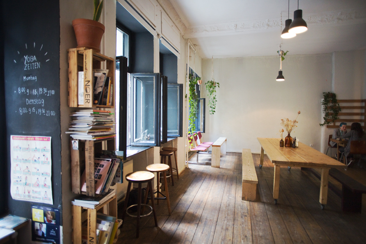 For our next instalment, we took a short walk over the Oberbaumbrücke to meet with one of our neighbours, Maria, who opened a cafe/restaurant/yoga space five years ago called New Deli Yoga. “I wanted to build a unique place, where people like me and people not like me could sit on a big table all together,” she says. “Where strangers could exchange their talents and their ideas and form connections”. Maria compares New Deli Yoga to a big salad bowl, with different things all coming together. It’s a nice way to look at the way she got to where she is too.