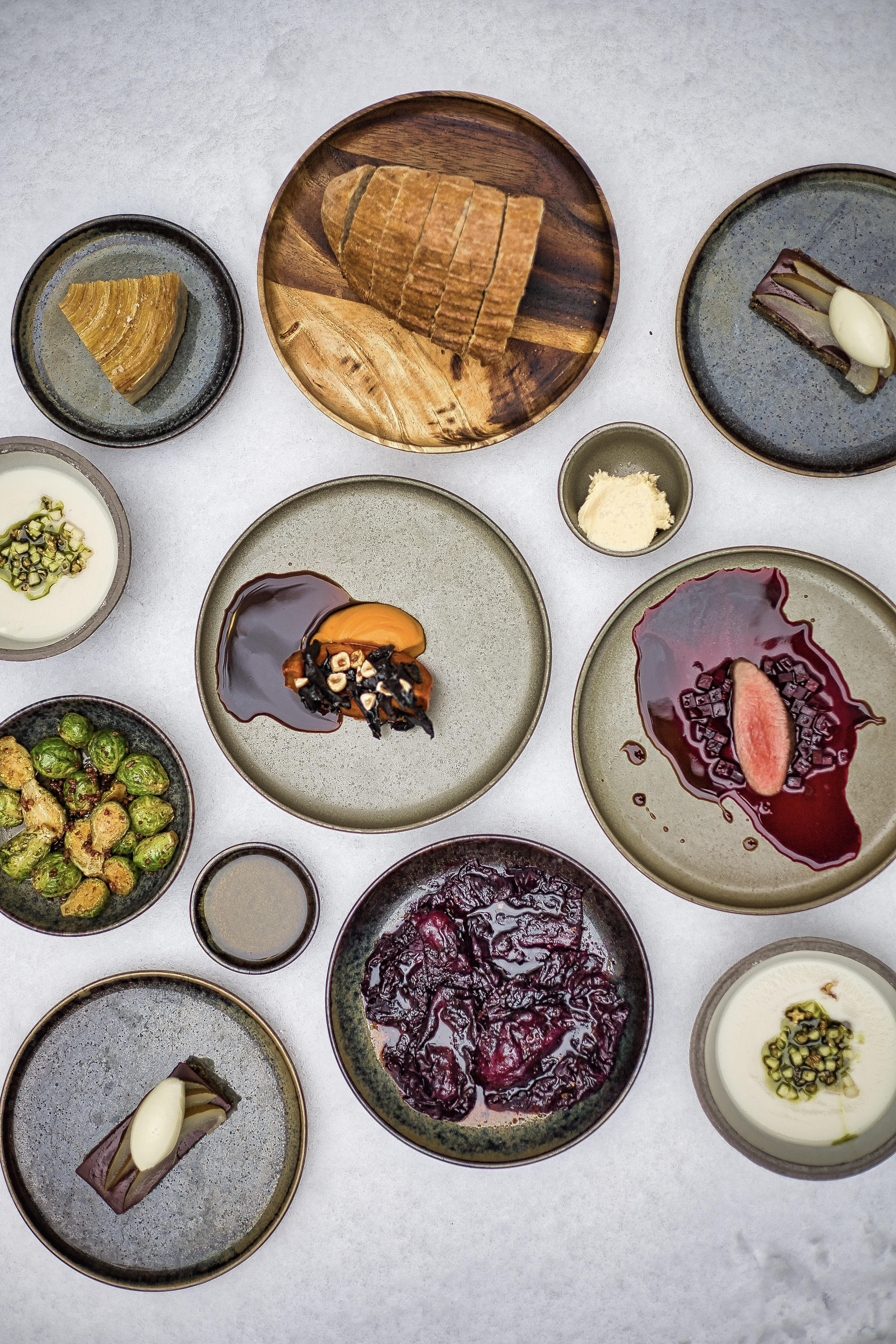 red cabbage, quince, chili brussel sprouts, miso, speck potato, celeriac, sage